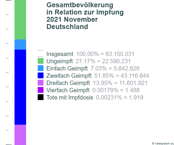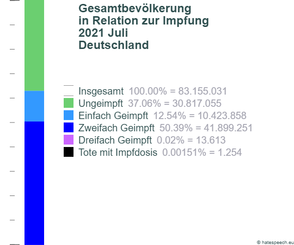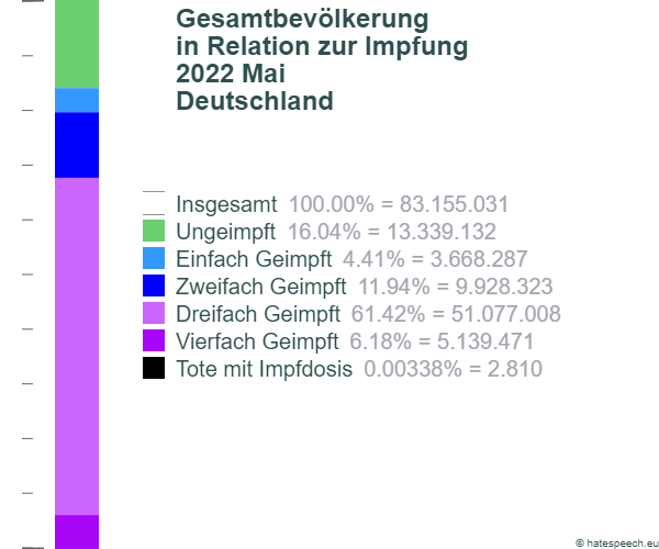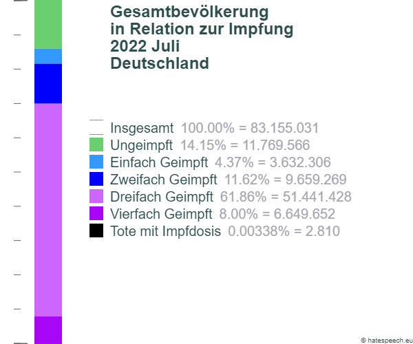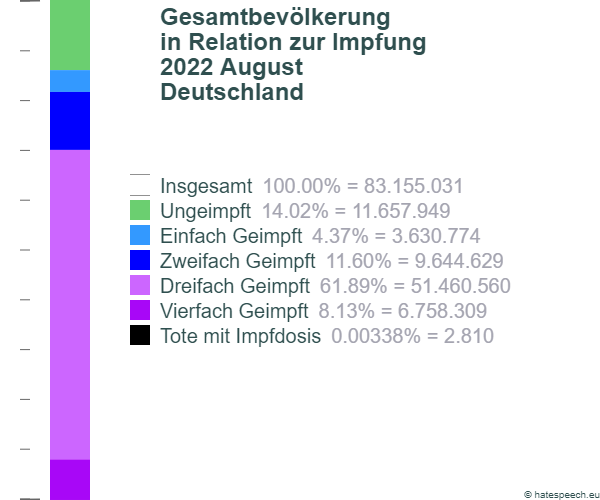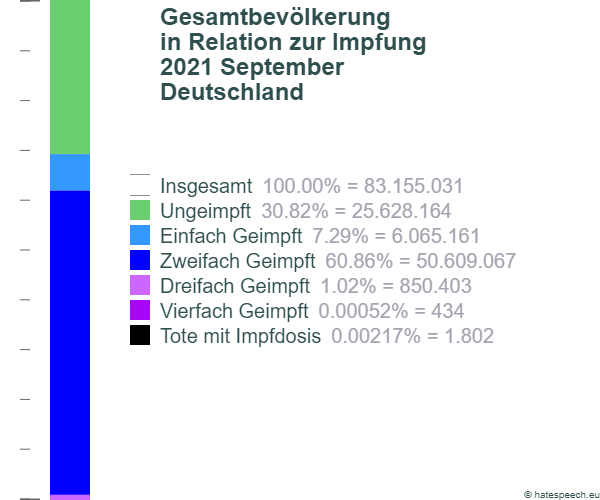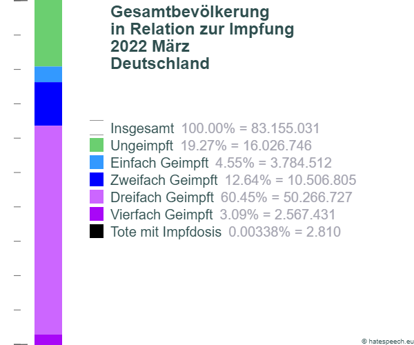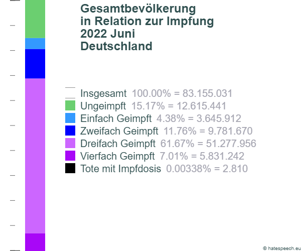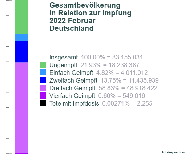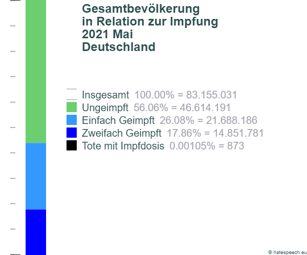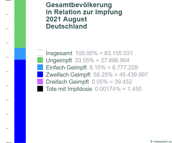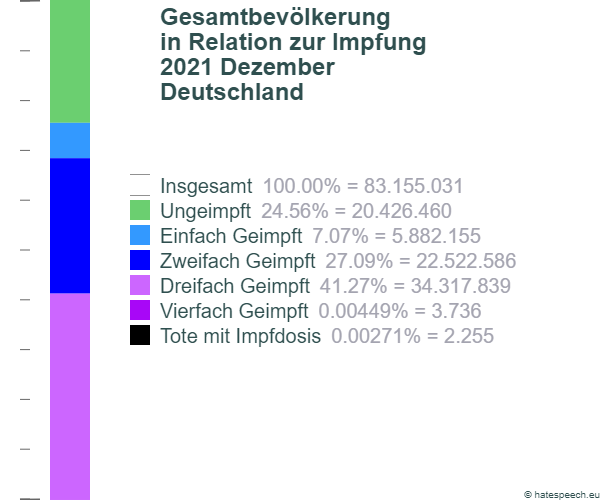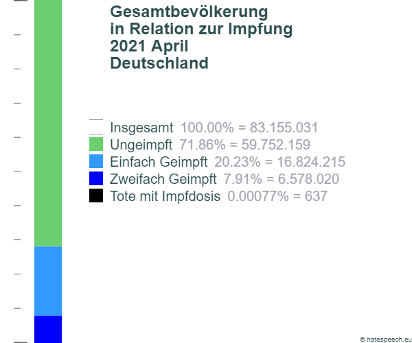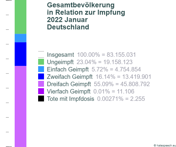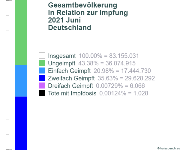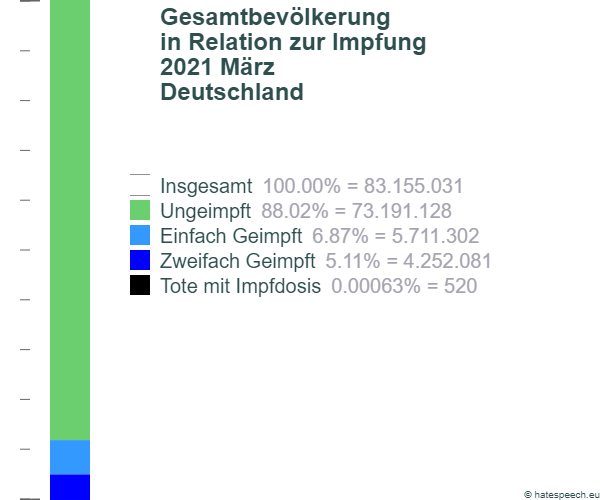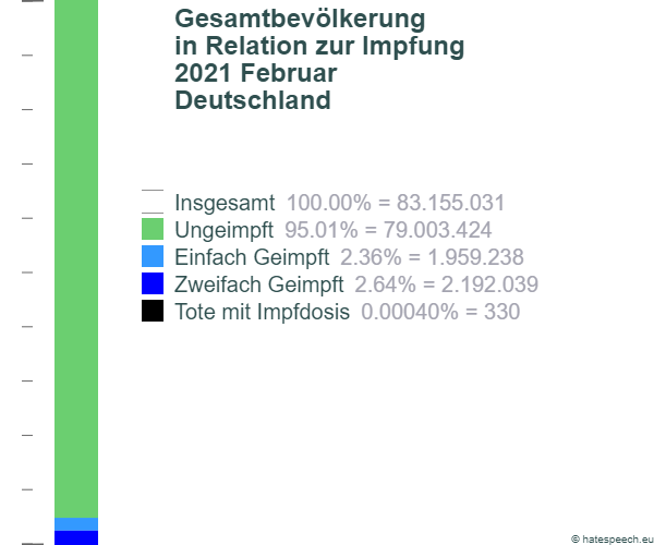 Die Zahlen werden für jeden Monat zusammengefasst. Jeder Monat zeigt den Fortschritt mit allen Vormonaten an. Um die Bevölkerungsanzahl konstant zu halten und nicht nach jedem Monat abzuändern, werden die "Toten mit Impfung" den Ungeimpften angerechnet. Die Anzahl der "Toten mit Impfung" ist für diese Grafik eigentlich nicht vorgesehen und nur eine Zusatzinformation.